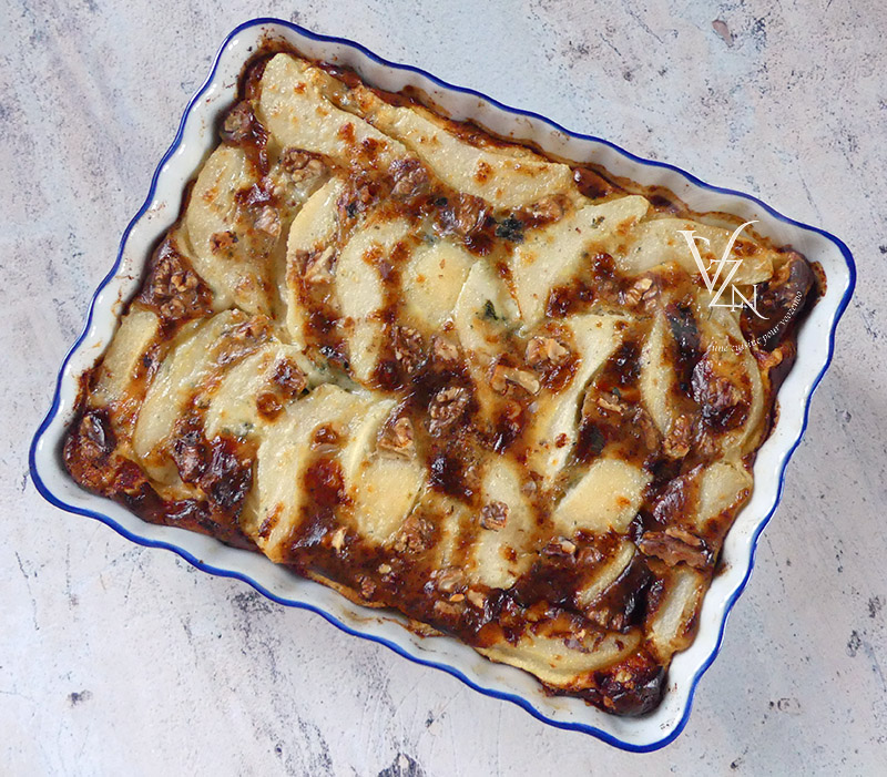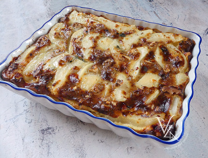 - Natly du blog cuisinedewoozenoo avec un Gratin de poires au roquefort et noix