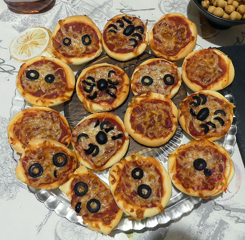 Je vous donne également la recette pour les pizza et le lien pour les doigts de sorcière que j’ai déjà publié, il y a très longtemps.