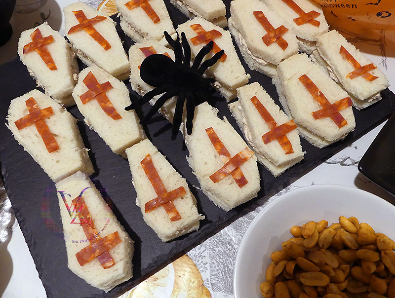 Des cercueils, des doigts de sorcières, des pizzas araignées … des mygales !!!! Ces dernières ne sont pas comestibles ! lol