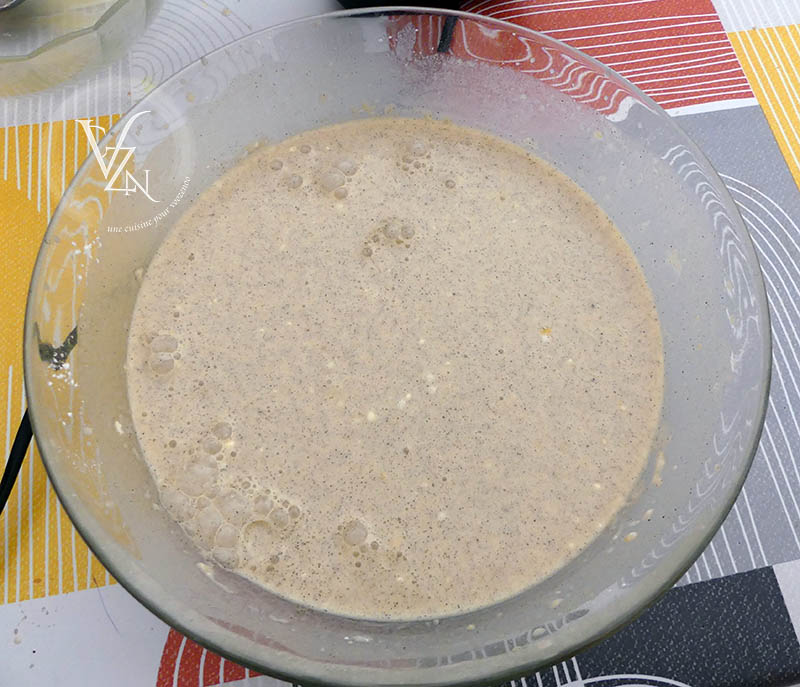 Verser la farine, la levure, la poudre de vanille et le sel. Bien fouetter en ajoutant au fur et à mesure le lait. Il faut obtenir une belle pâte bien lisse.