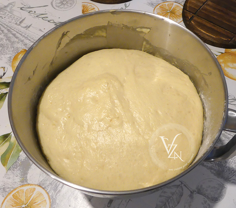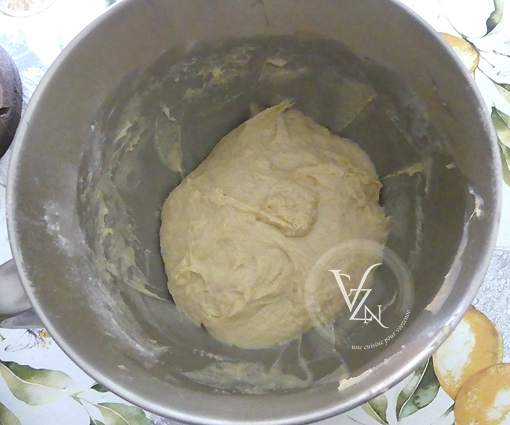 Fougasse d'Aigues-Mortes étape2Une fois le beurre incorporé, pétrir encore 8 à 10 mn à vitesse 2 ou 3 jusqu’à ce que la pâte se détache de la cuve du robot.