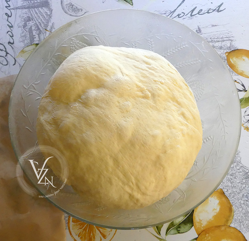 Fougasse d'Aigues-Mortes étape7Couvrir avec un linge propre et la laisser pousser dans un endroit chaud pendant une bonne heure. Elle doit tripler de volume.