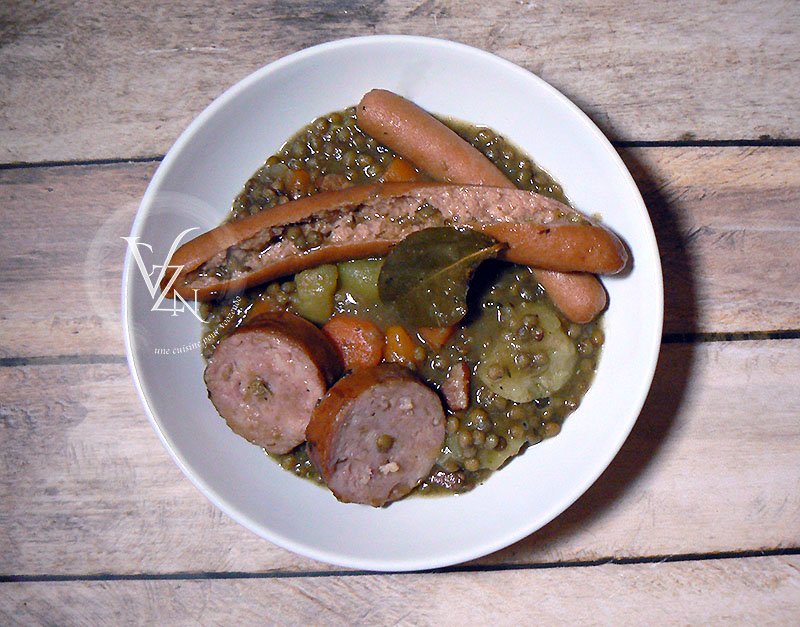 En principe, c’est le 1er de l’an qui faut les manger mais ma grand-mère ne trouvait pas ce plat festif !! et elle s’opposait à ce qu’il soit servi ce jour là. Mémé faisait ce plat avec des saucisses italiennes qu’elle trouvait sur Marseille. Au fil du temps, elle a ajouté des saucisses plus traditionnelle et des pommes de terre pour les enfants avec l’espoir de nous en faire manger plus !! 😉