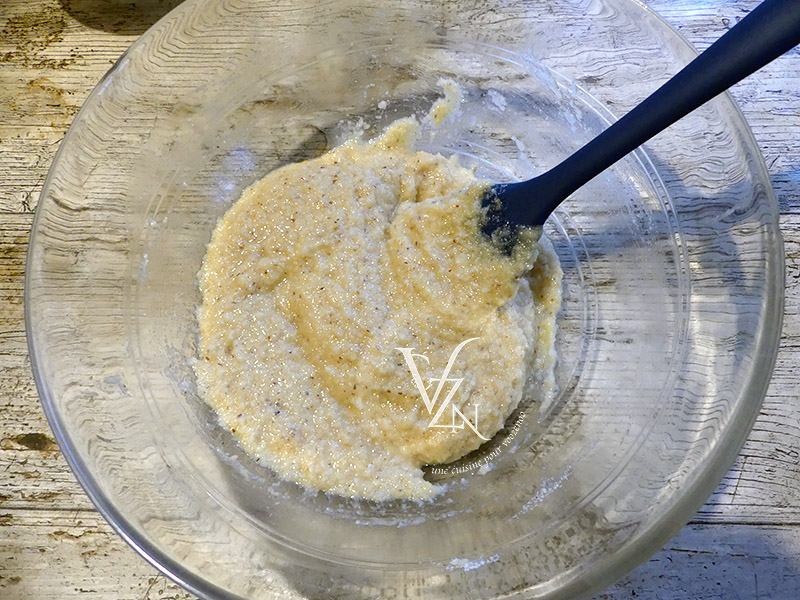 Ajouter l’eau de fleur d’oranger, mélanger avec une spatule souple (la pâte est doit être assez consistante).